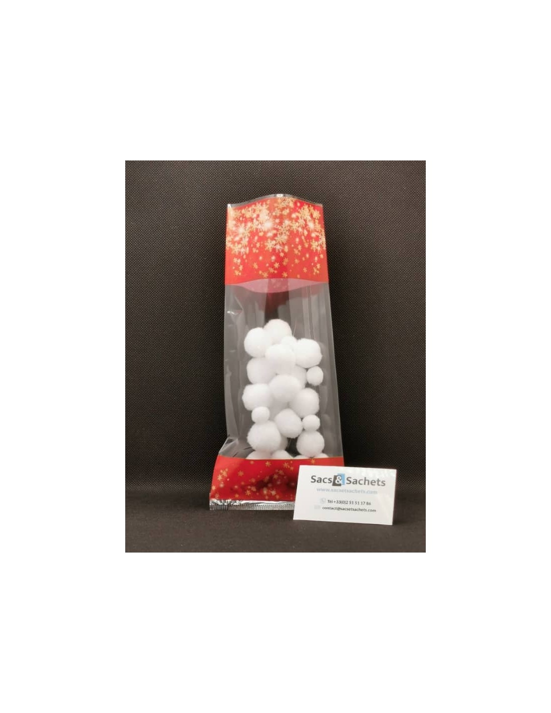 Sachet fond plat motif Noël Flocon Or - 120 x 260 mm - Carton de 1000